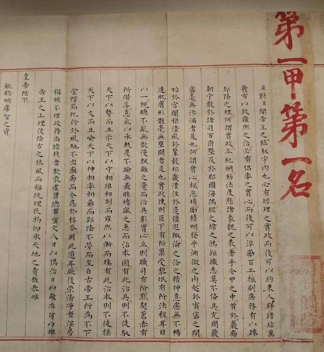 说回试卷本身,这是“殿试卷”,要当着皇帝的面现场作答,可不是其他考试那样需要誊抄!皇帝和读卷官审批的就是原件,那御笔朱批便是明证。